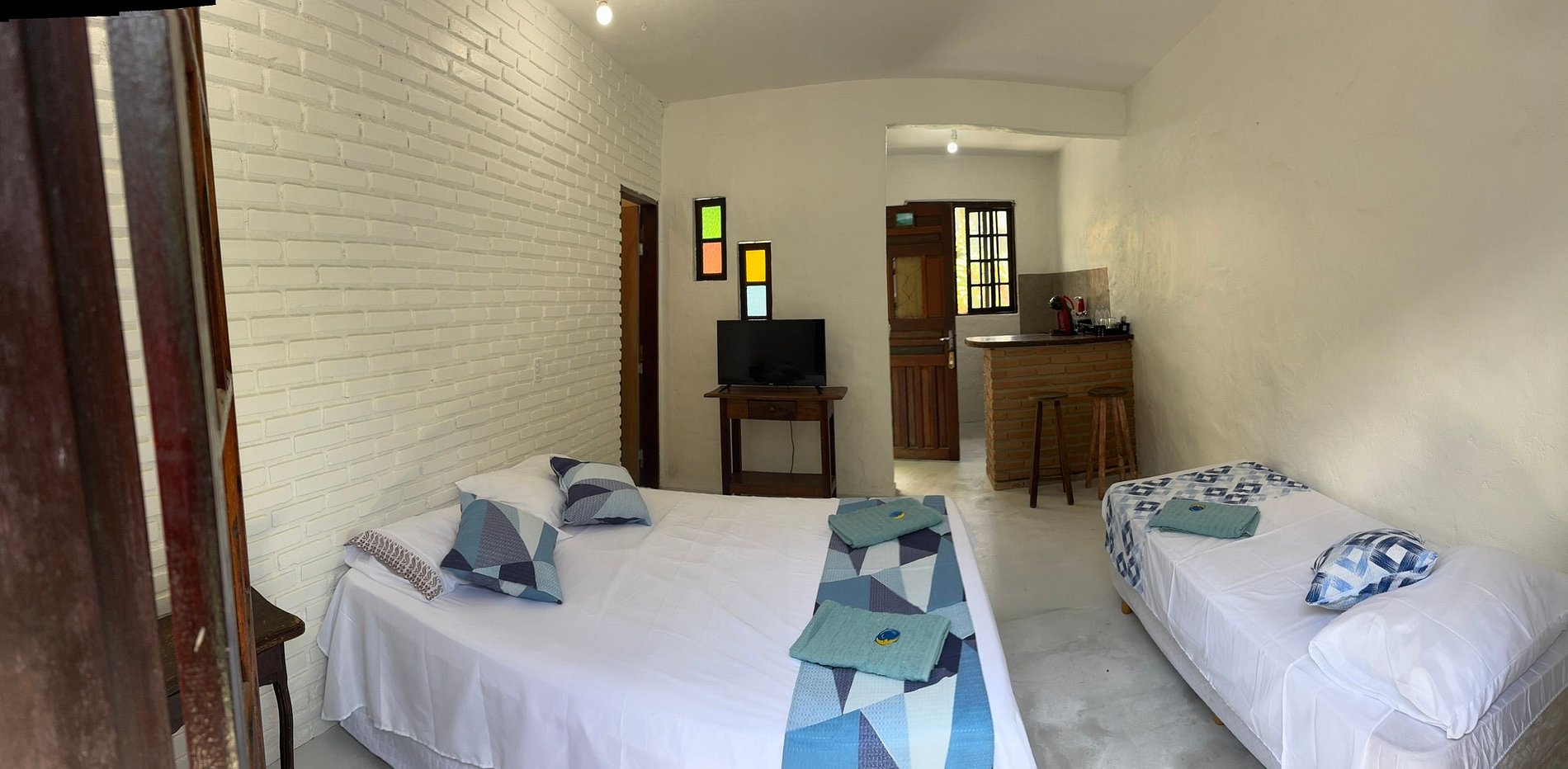 Fernanda e Marcello são muito cordiais e se preocupam com cada detalhe! Os chalés são novos e muito confortáveis, contando com móveis e eletrodomésticos também novos e que atendem muito bem qualquer necessidade! Café da manhã bem farto, piscina para recreação pós praia, entre outras coisas! O atendimento merece reconhecimento, pois é o melhor que já recebi em todas as hospedagens que fiz!