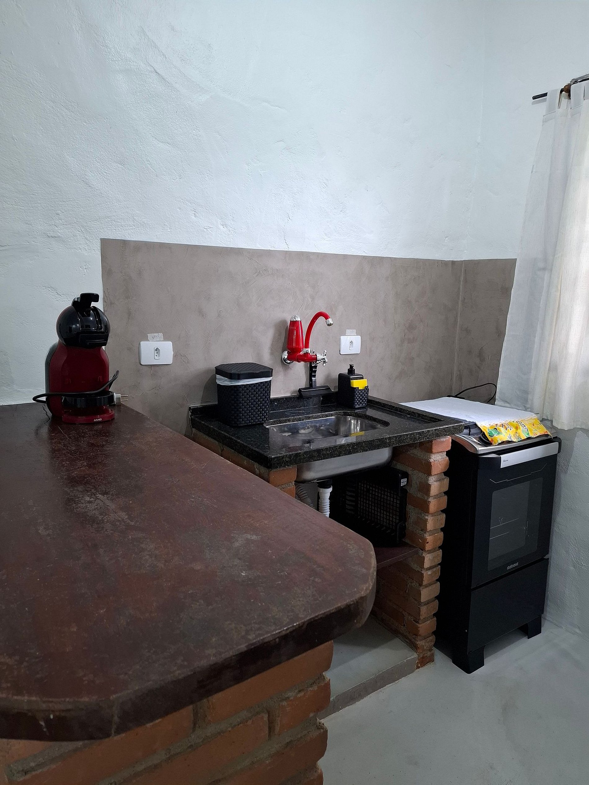Chalé Térreo com churrasqueira exclusiva, quintal, varanda gourmet, área para pet , smart tv com acesso aos streamings, cozinha completa com fogão e forno a gás , geladeira e utensílios domésticos, vista para o jardim, café da manhã servido no quarto